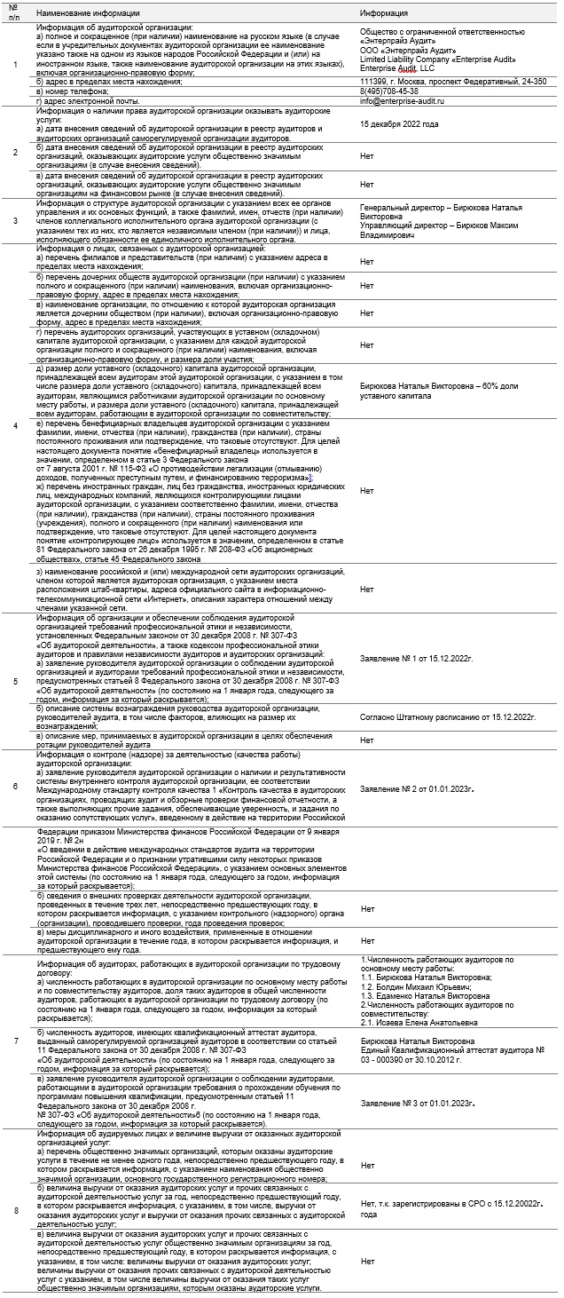 Компания является членом Саморегулируемой организации аудиторов - Ассоциация «Содружество», с присвоенным ОРНЗ 12206323247.